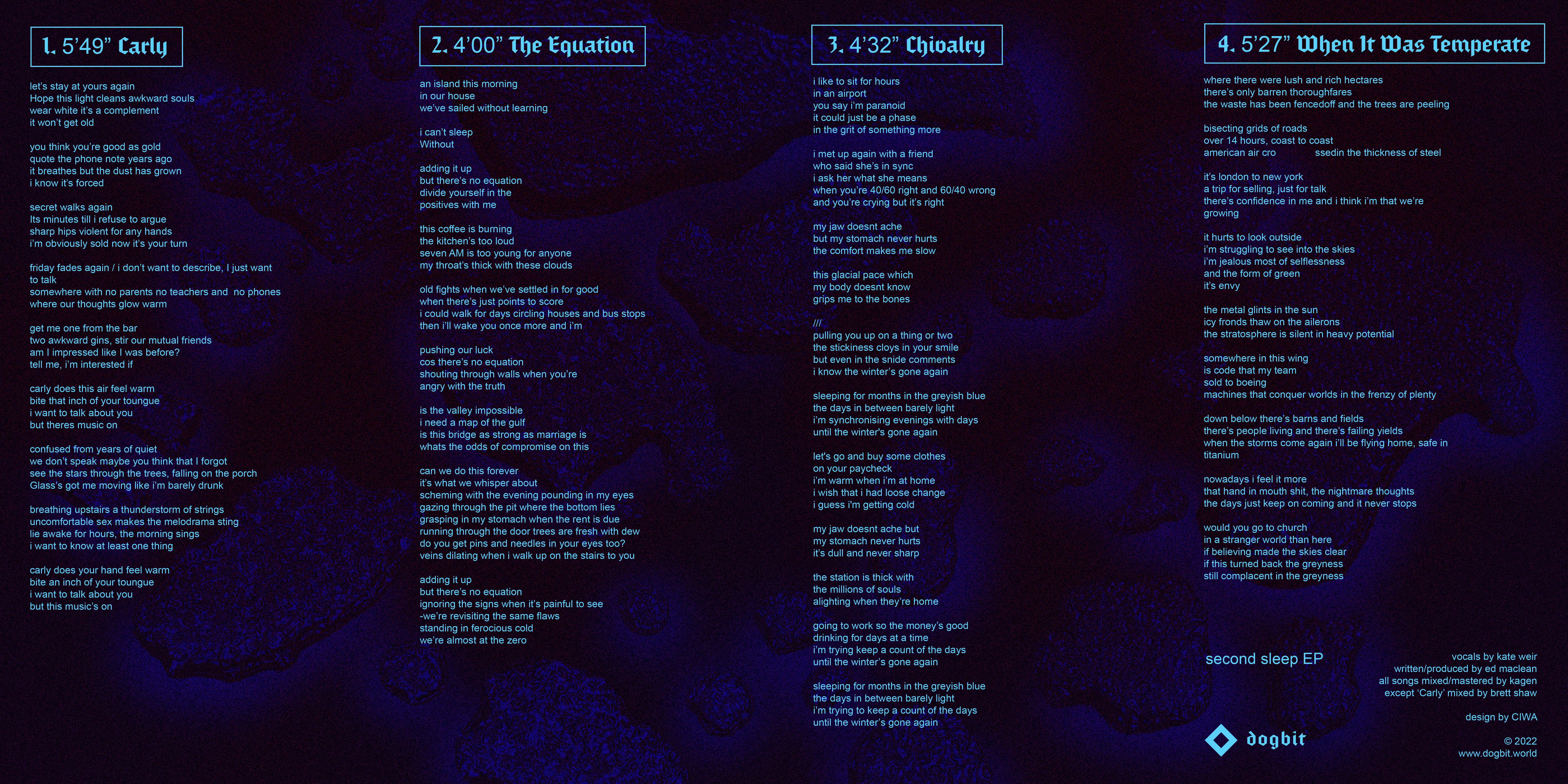 Campaign and promotional material for South-London band dogbit’s debut EP second sleep.